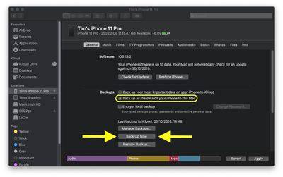 安装 iOS 16 或 iPadOS 16 测试版的时间不应超过一小时,但在此之前,请务必创建设备内容和设置的备份。以下分步说明说明了如何在 macOS Catalina 中备份 iPhone。