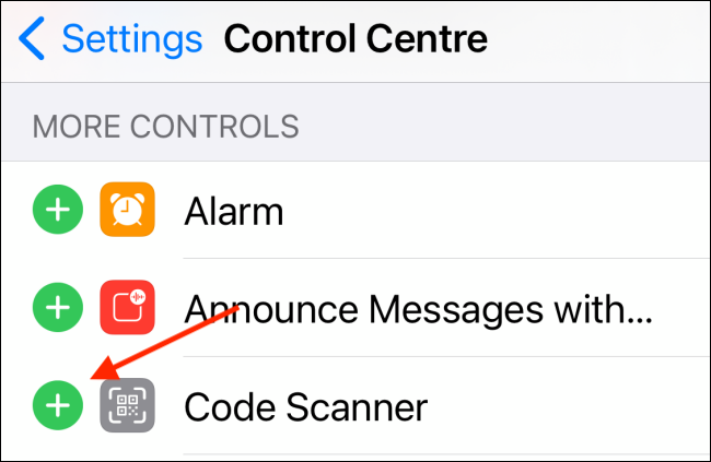 现在,“代码扫描程序”控件将添加到“控制中心”的底部。现在是时候使用该功能扫描QR码了。