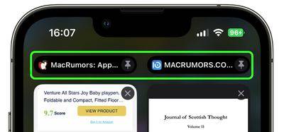 这是因为当您在 iOS 16 中固定一个标签时,您不再需要搜索所有打开的标签,因为它会像这样移动到打开的标签屏幕的顶部。