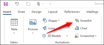 首先,打开Word应用程序。在“插入”选项卡的“插图”组中,单击“ SmartArt”。