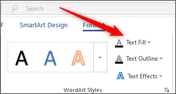 在出现的“格式”选项卡的“艺术字样式”组中,单击“文本填充”选项。