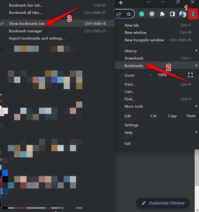 - 您也可以按Ctrl + Shift +B执行上述操作 [打开 Chrome]