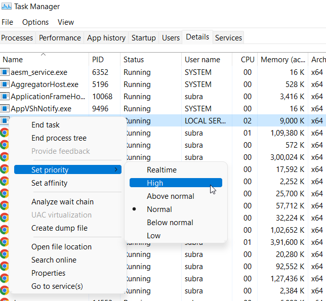 启动时崩溃的应用程序也可以在 Windows PC 上设置为高优先级以解决问题。下面列出了设置高优先级需要遵循的必要步骤: