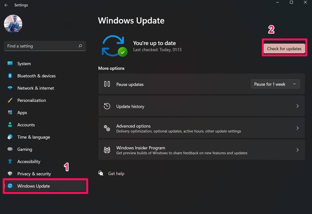 有时,过时的系统操作系统也可能导致 As Dusk Falls 在启动问题上不断崩溃。如果您的 Windows 操作系统已过时或您的版本已过时,请按照以下步骤检查并安装最新更新。