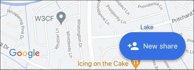如果您以前从未在Google地图中分享过您的位置,则需要先与联系人分享您的位置,然后才能请求他们的位置。点击“新共享”。