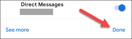 将打开一个菜单,并突出显示与您刚收到的通知关联的通知通道。拨动开关。