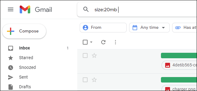 为此,请在Gmail中使用“ size:”运算符进行搜索。例如,要搜索大小超过20MB的电子邮件,请在搜索栏中输入以下文本,然后按Enter: