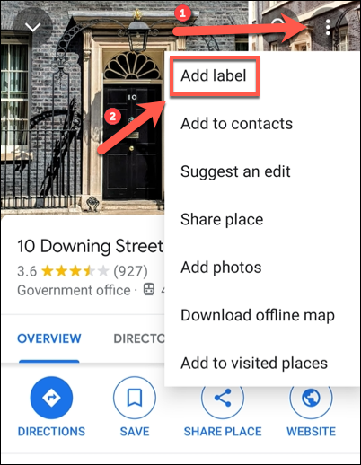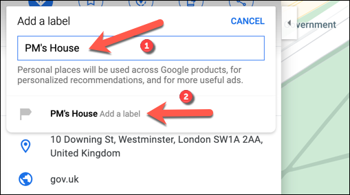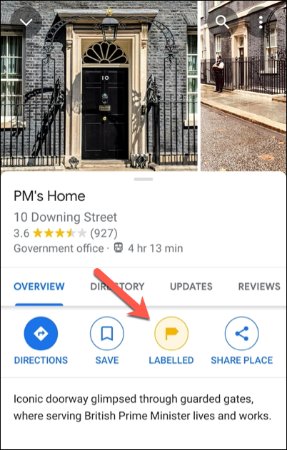 添加后,您就可以在Google地图中专门搜索标签。该标签将出现在地图视图和信息面板中的地名上方。