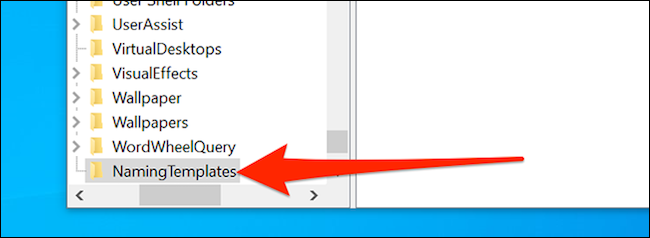 单击左侧资源管理器下的“ NamingTemplates”目录。如果看不到该目录,请右键单击“ Explorer”目录,然后选择“新建”>“密钥”。输入“ NamingTemplates”作为目录名称,然后按“ Enter”。