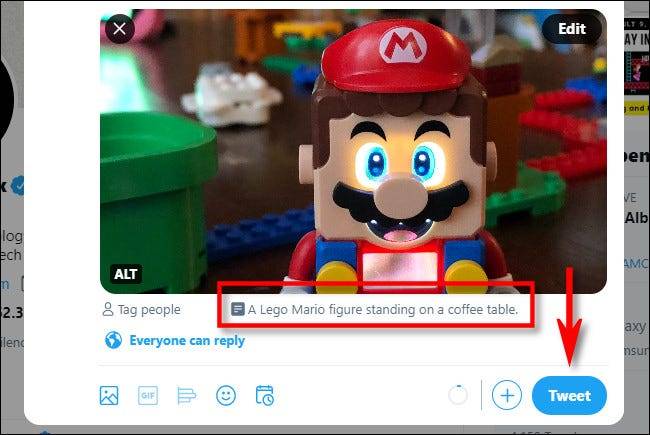 您的替代文字已注册。接下来,点击“ Tweet”以鸣叫图像。