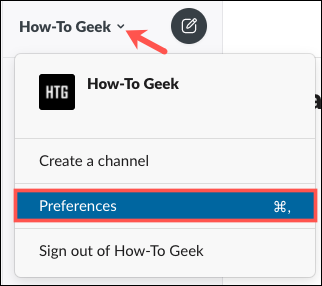 在左上角,单击工作区名称旁边的箭头,然后选择“首选项”。