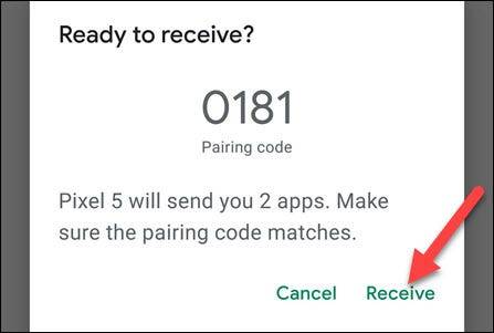 配对代码将出现在您的设备及其设备上。让他们知道代码是什么,如果匹配则可以轻按“接收”。