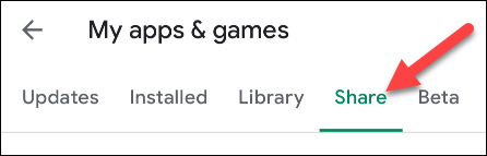 您将被带到“我的应用和游戏”页面上的“更新”标签。切换到“共享”选项卡。