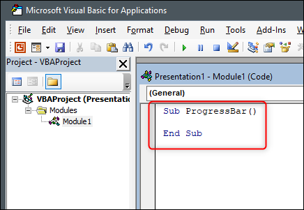 现在将打开“ Microsoft Visual Basic应用程序(VBA)”窗口。在编辑器中,您将看到以下代码: