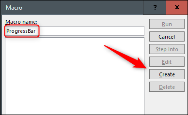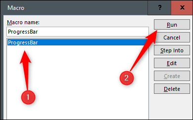 接下来,选择您的宏名称(在我们的示例中为“ ProgressBar”)以选择它,然后单击“运行”。