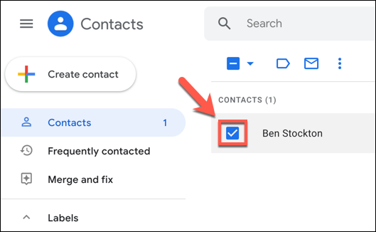 如果要选择要导出的单个联系人,请单击右侧“联系人”部分中每个条目旁边的复选框。