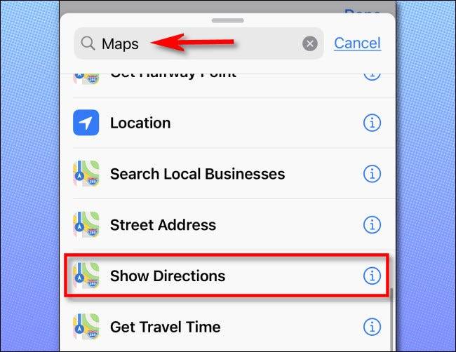 提示:通过编辑此操作,您还可以将方向从“驾驶”更改为另一种运输方式,例如“步行”或“公共汽车”。另外,您可以点击“地图”以将导航应用程序更改为iPhone上的另一个应用程序,例如Google Maps。