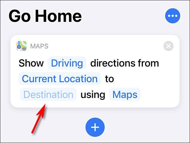 之后,“显示路线”操作将添加到您的快捷方式中。接下来,在操作提示框中点按“目标”以设置目标地址。