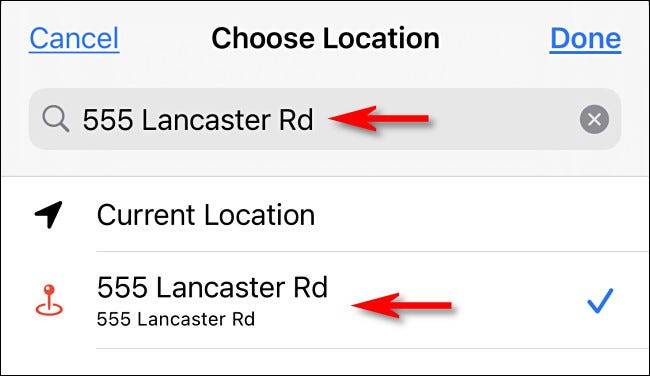 点击“目的地”后,您将看到一个新的弹出面板,您可以在其中设置目标地址。输入您的家庭住址(或您想去的任何地方),然后在搜索结果列表中点按它。