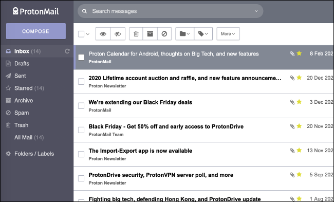 能够搜索您的收件箱是您可能理所当然的一项功能,但是使用安全的电子邮件,它并不是那么简单。由于电子邮件是端到端加密的方式,因此无法使用ProtonMail搜索收件箱。您只能按主题行,发件人,收件人和时间进行搜索。这是因为ProtonMail的服务器无法解密您的电子邮件。