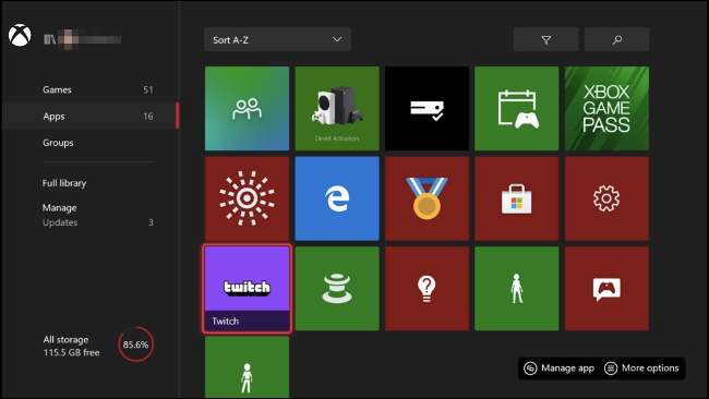 下载Twitch之后,启动应用程序并登录(如果尚未注册,请创建一个帐户)。如果看不到该应用程序,请按控制器上的Xbox按钮,然后向下滚动到“我的游戏和应用程序”。选择“查看全部”,然后选择“应用程序”。