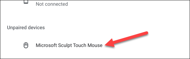 当您看到鼠标出现在“未配对的设备”部分时,请选择它。