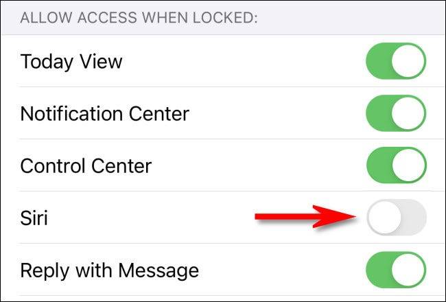 在“密码”设置中,向下滚动直到找到“锁定时允许访问”部分。点击“ Siri”旁边的开关将其关闭。