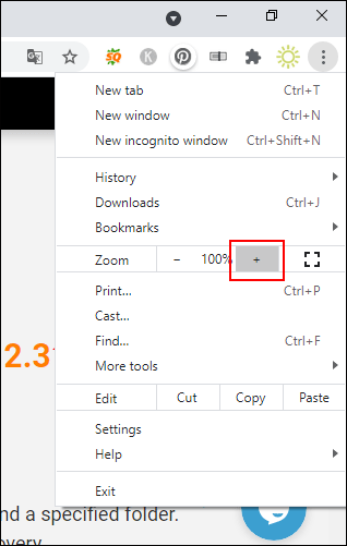 - 单击“缩放”旁边的加号图标以放大Web浏览器。如果要在Web浏览器上进行缩放,请单击减号按钮。