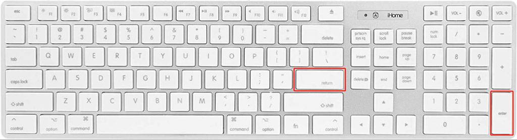通常,Enter按钮位于3键和的右侧。键上的数字小键盘的右下角。并且您可以在键盘的主要字母数字部分的右侧找到返回键。
