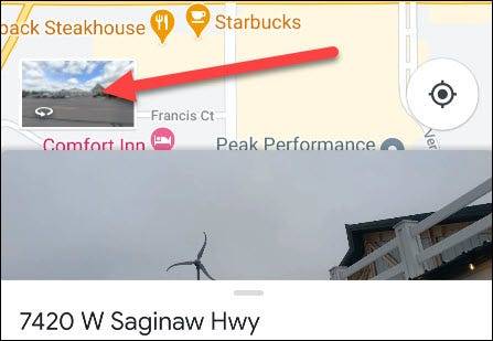 接下来,有关位置的信息将从屏幕底部向上滑动。点击左侧的街景预览窗口。(如果该位置无法使用街景视图,则不会看到此信息。)
