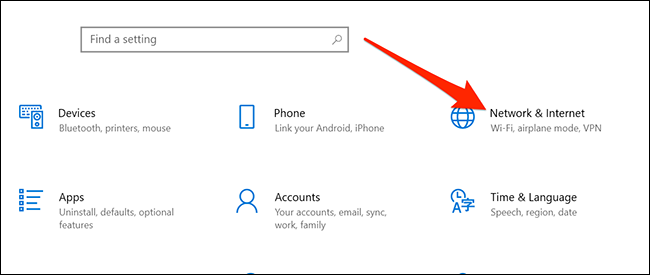 在“设置”中,单击“网络和Internet”,因为其中包含您的无线网络信息。