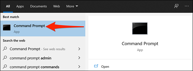 首先,通过启动“开始”菜单,搜索“命令提示符”,然后在结果中单击实用程序来打开命令提示符。