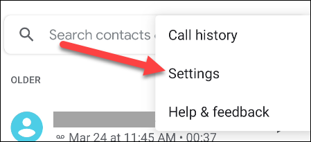 顺便说一句,让我们启用“已验证的呼叫”。打开Google的Phone,然后点击右上角的三点菜单图标。