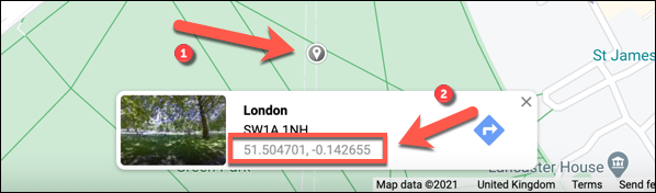 要查看该位置上的较大的红色别针(以及左侧的信息面板),请 在快速说明框中选择 地图坐标。