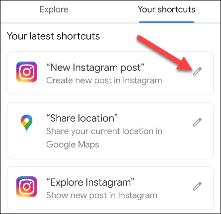 您可以在“您的快捷方式”标签中查看所有已启用的快捷方式。如果您想更改快捷方式所需的命令,请点击铅笔图标。