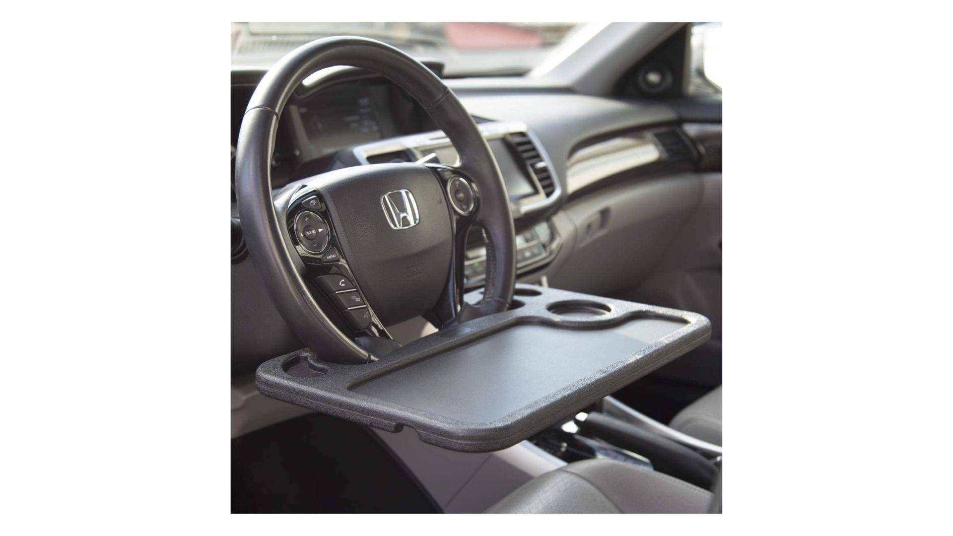 - 您想在哪里使用它: 这可能是决定选择哪个办公桌时最重要的因素。在方向盘的底部或顶部有方向盘台。有些汽车托盘可以固定在方向盘上,但也可以从后座固定在头枕杆上。然后,此清单上甚至还有一个完全位于乘客座位上的办公桌,为您提供了更多的工作空间。