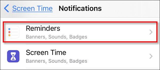 在通知中,您会看到一个应用列表。滚动浏览并选择您要在CarPlay中禁用或禁用其通知的应用。我们以“提醒”为例。