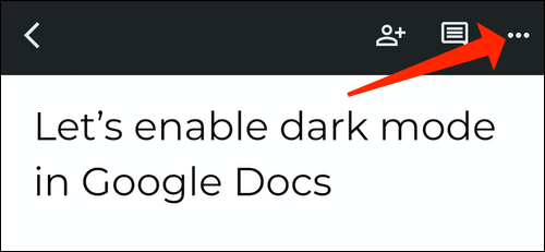 现在,Google文档中的所有文档将以暗模式打开。但是,您可以根据需要查看浅色主题的文档。为此,请在Google文档中打开任何文档,然后点击右上角的三点菜单图标。