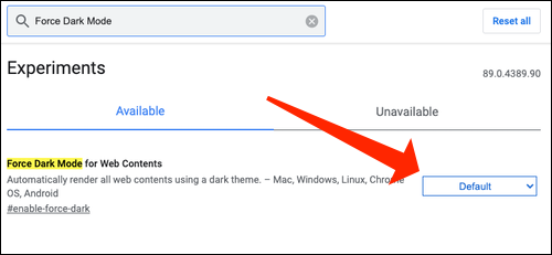使用顶部的搜索框查找“ Force Dark Mode”。