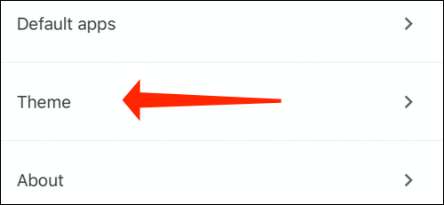 现在,选择“主题”选项,这将允许您选择黑暗模式。此选项在Android上称为“选择主题”。