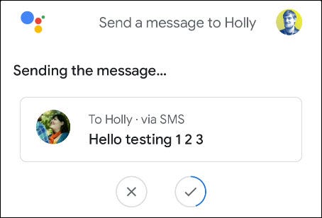 选择一个人后,Google会询问您要发送的消息。只需说出您想发送给该人的内容即可。