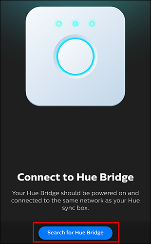 它将搜索您网络上的网桥。然后,在出现提示时,按色相桥上的中心按钮。