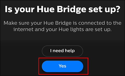接下来,它将询问您是否设置了色相桥。如果是这样,那就太好了!继续并点击“是”。如果不是,请查看我们的指南,以了解如何设置Philips Hue灯。