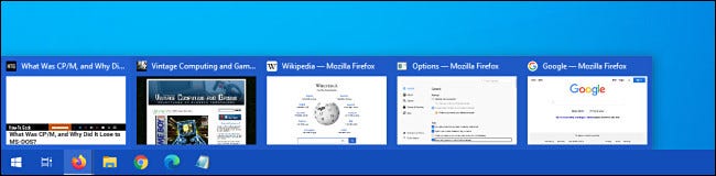 之后,关闭“选项”选项卡。下次将鼠标悬停在任务栏中的Firefox上时,您将在打开的每个Firefox窗口中最多看到16个选项卡缩略图。