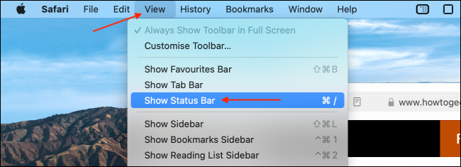 首先,在Mac上打开Safari应用。单击菜单栏中的“查看”部分,然后选择“显示状态栏”选项。