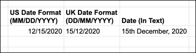 想象一下,您正在使用来自英国客户的工作表。英国使用“ DD / MM / YYYY”格式,这意味着日期值在前,然后是月份和年份。但是,如果您来自北美,则可能会使用其他格式,例如“ MM / DD / YYYY”。您将希望电子表格与该格式匹配,以便日期对您有意义。