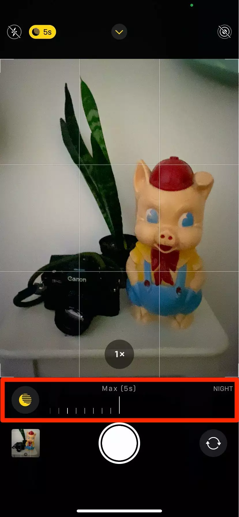 当您尝试在弱光环境下拍照时,夜间模式会自动打开。您会在左上角附近看到一个小的符号,它看起来像月亮,变成黄色。激活后,月亮符号附近会出现“ 1s”或“ 5s”之类的时间,表示曝光时间(或相机拍照前让其照亮的时间)。