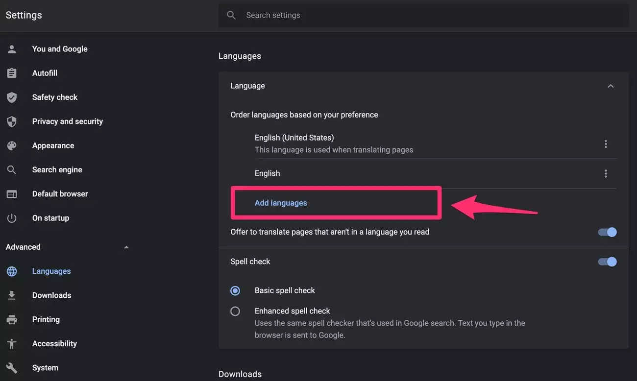 6.如果要添加另一种语言并在网页上收到Google翻译提示,请单击“添加另一种语言”并重复该过程。