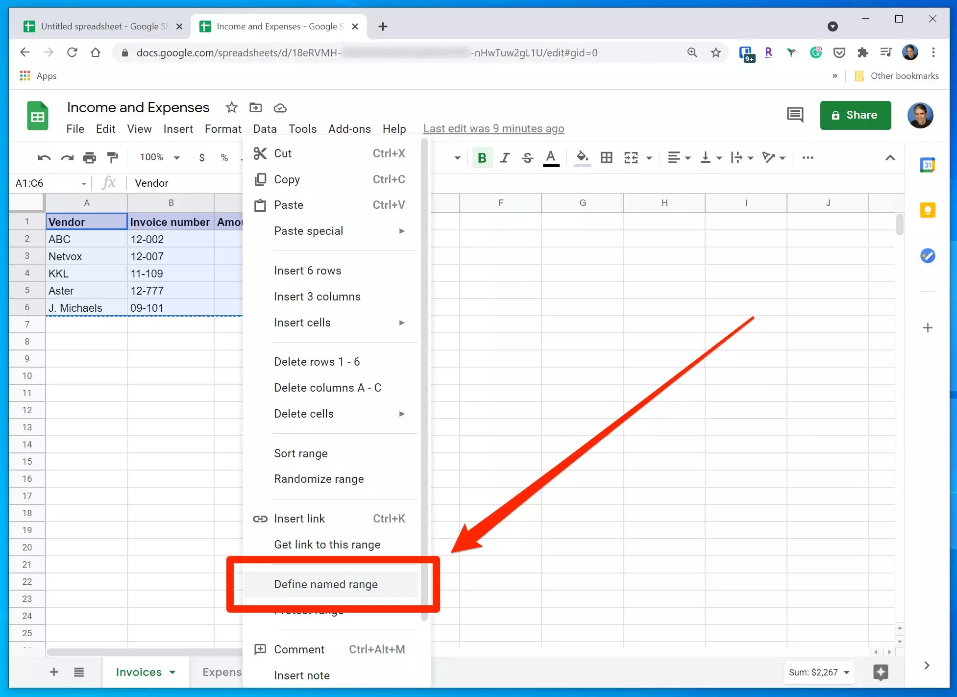1.在原始电子表格中,选择范围,然后单击鼠标右键。