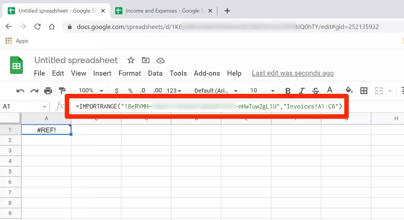 1.只有两个参数,使用IMPORTRANGE函数通常非常简单。假设您有一个电子表格,并且要将表导入到新的电子表格中。